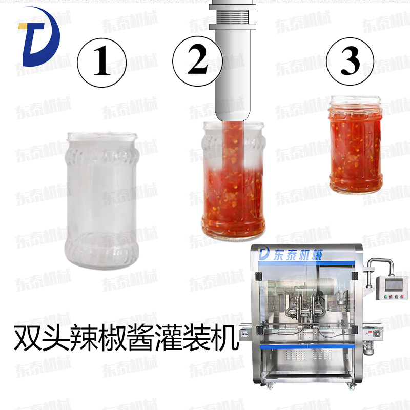 辣椒醬灌裝機采用活塞式灌裝原理,適用于調(diào)味品中帶顆粒并且濃度較大的辣椒醬、豆瓣醬、花生醬、香菇醬、果醬、牛油火鍋底料、紅油火鍋底料、蝦醬等較為粘稠醬類的灌裝。