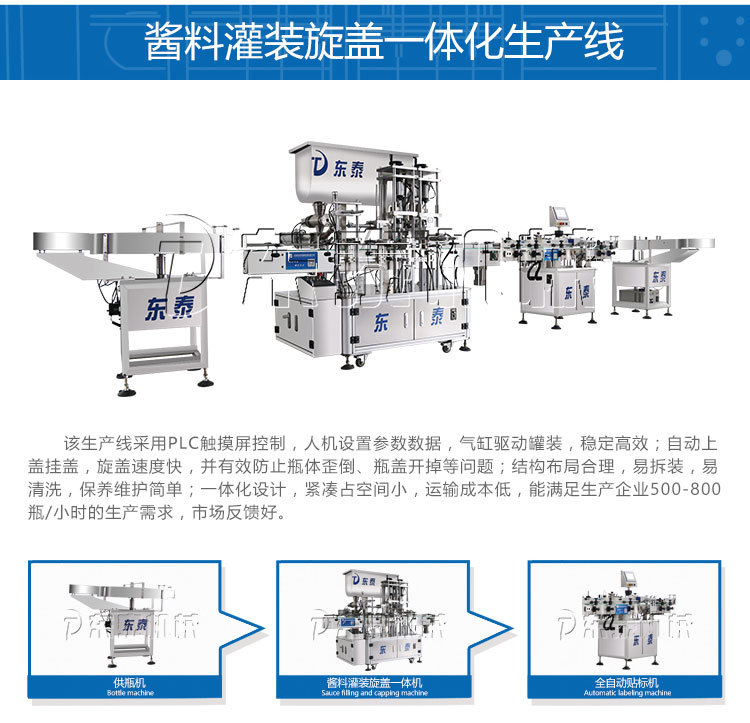 醬料的銷(xiāo)售情況直接關(guān)系到市場(chǎng)的發(fā)展,而醬料要想有一個(gè)好的銷(xiāo)量的話,就需要有好的質(zhì)量作為保障的,而這個(gè)保障就是給予醬料好的灌裝效果,所以這也使自動(dòng)化醬料灌裝機(jī)成為了各企業(yè)生產(chǎn)包裝的得力助手,能有效的完成灌裝任務(wù),在規(guī)格化標(biāo)準(zhǔn)化中更加合理化,對(duì)各種醬料不僅起著保護(hù)的作用,還更為企業(yè)創(chuàng)造著更多的方便,正是因?yàn)槲覀儢|泰一直以來(lái)都是敢于挑戰(zhàn)、敢于創(chuàng)新和突破讓自己的實(shí)力在市場(chǎng)有了很大的進(jìn)步,來(lái)推進(jìn)醬料企業(yè)生產(chǎn)之后,從而帶來(lái)各個(gè)領(lǐng)域的快速的發(fā)展。