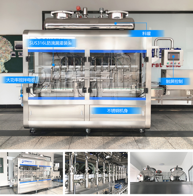 灌裝機采用活塞式灌裝原理,適用于調(diào)味品中帶顆粒并且濃度較大的辣椒醬、豆瓣醬、花生醬、香菇醬、果醬、牛油火鍋底料、紅油火鍋底料、蝦醬等較為粘稠醬類的灌裝。