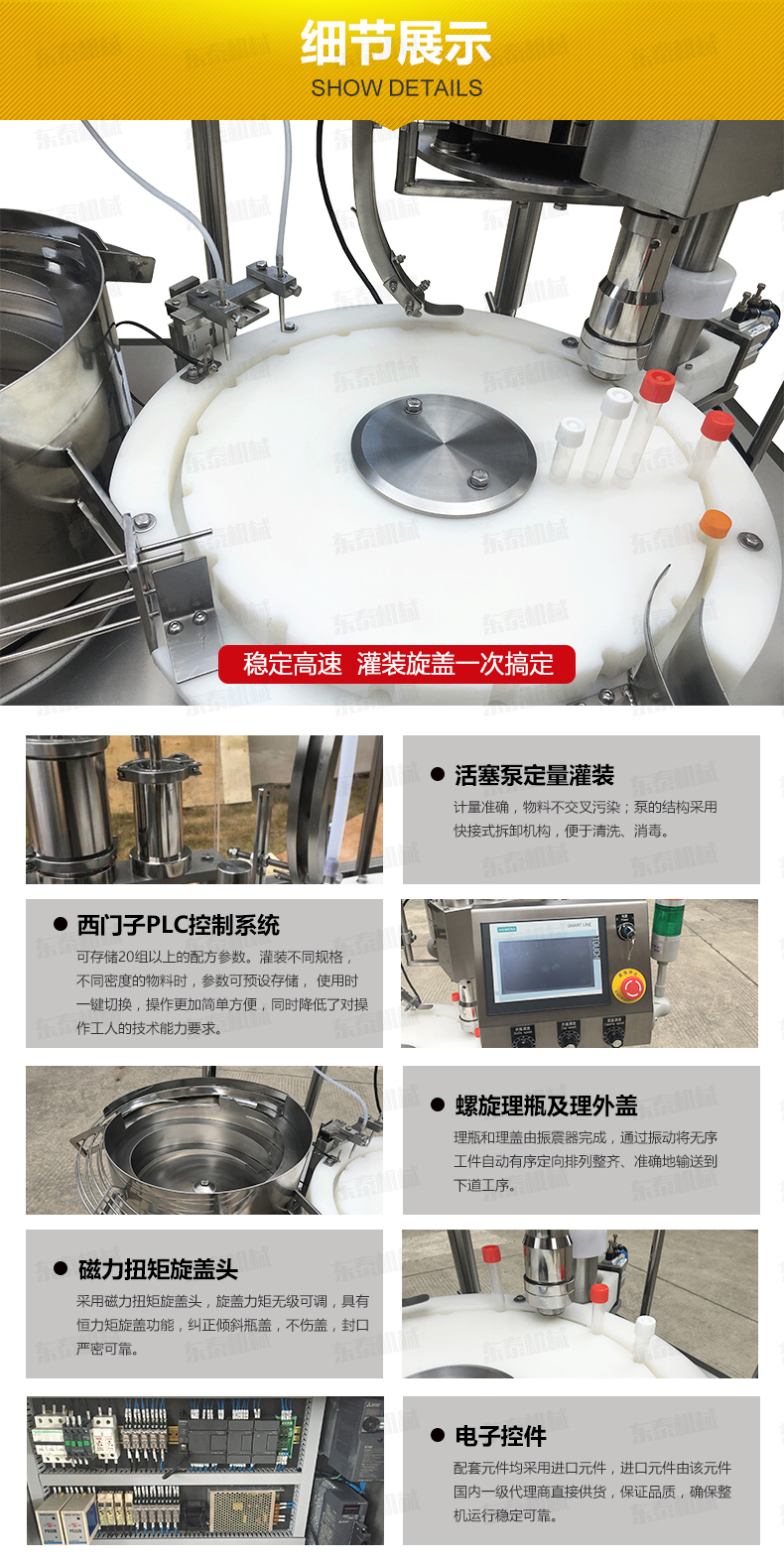 時(shí)代發(fā)展中科學(xué)技術(shù)飛速的進(jìn)步著,使得各行業(yè)發(fā)展都迅速的壯大起來,F(xiàn)在診斷試劑灌裝旋蓋一體機(jī)不斷跟隨市場(chǎng)的需要前行被越來越多的應(yīng)用在食品、醫(yī)藥、化工、日化等各個(gè)行業(yè)中有著更加明顯的應(yīng)用,則是更加凸顯液體灌裝機(jī)的優(yōu)勢(shì),診斷試劑灌裝旋蓋一體機(jī)不僅是在自動(dòng)化方面較為突出,售后服務(wù)方面可根據(jù)客戶的實(shí)際生產(chǎn)需求專業(yè)定制個(gè)性化需求,來贏得客戶的支持。